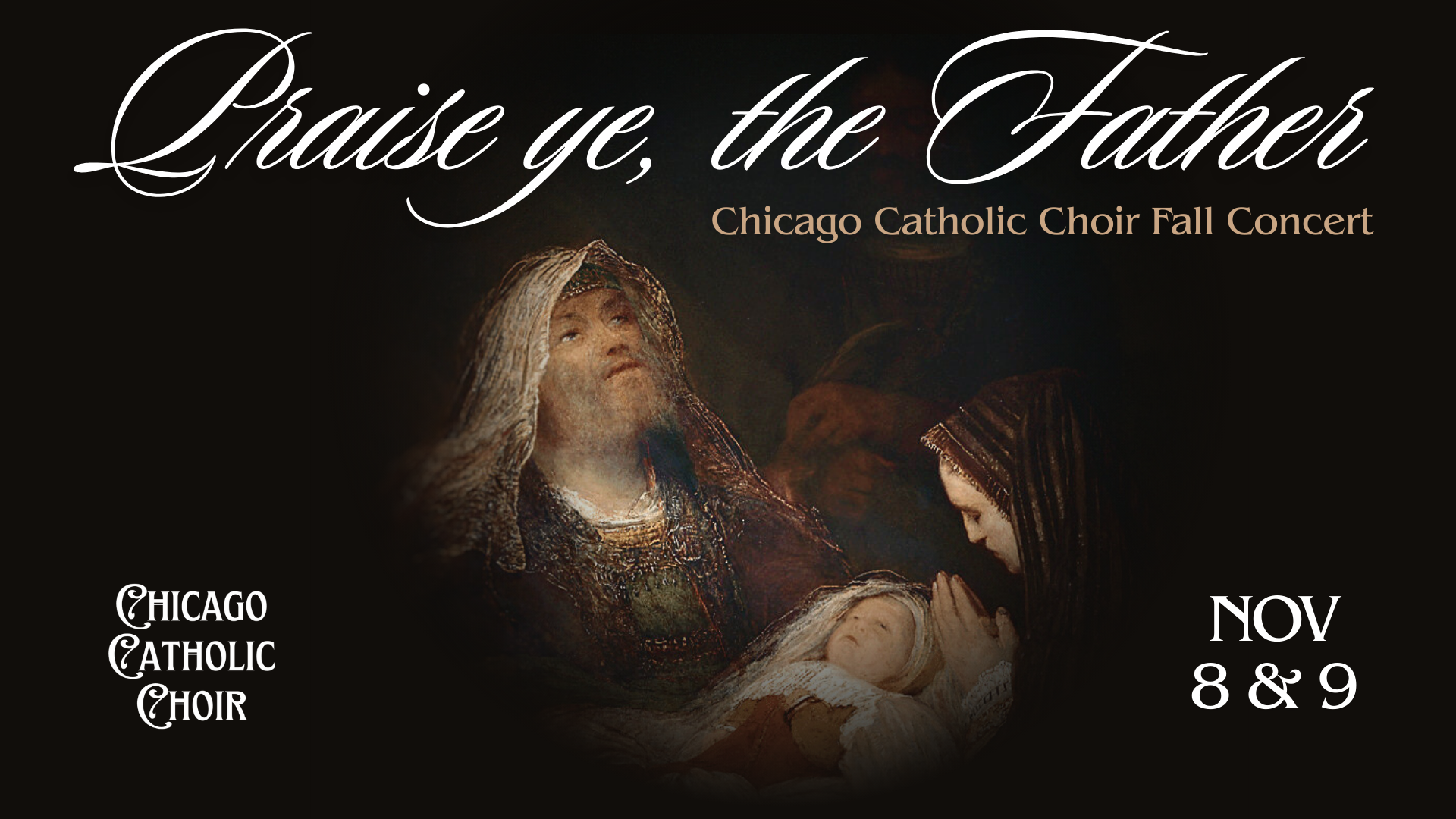 Praise ye, the Father Saturday, November 8, 2025 7:00 PM 8:00 PM Our Lady of the Holy Family 1334 West Flournoy Street Chicago, IL, 60607 United States (map) Google Calendar ICS Join the Chicago Catholic Choir for our fall concert, including works by St. Hildegard von Bingen, Lassus, Byrd, Palestrina, Morales, Tallis, and our director Kevin Allen.Free and open to the public!